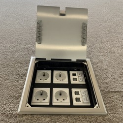 ZDR-130AB Caixa De Assoalho Recesso OEM & ODM Aço Inoxidável Escondida UE/REINO UNIDO // Alemanha Substituível 4 Tomadas 2 Módulo De Potência Soquete Do Assoalho